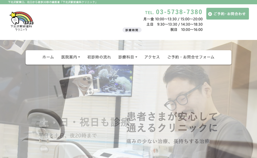 京王井の頭線・小田急線下北沢駅西口から徒歩3分という都心の利便性。首都高速永福ICから車で5分のアクセスも可能。平日19時まで診療で働く世代の通院を支援。完全予約制で待ち時間なく治療を受けられる環境を整備。近隣にコインパーキング4カ所あり車での来院も安心。
